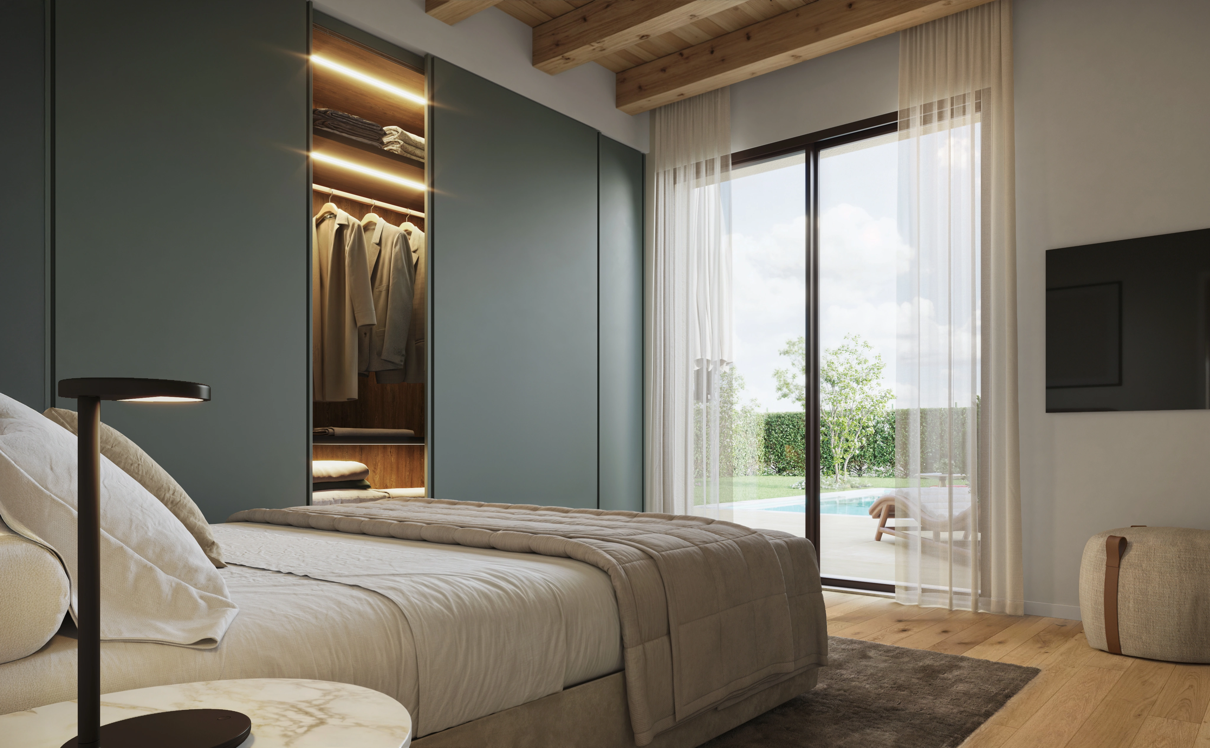 Villa Turbiana accoglie con spazi aperti e luminosi, disegnati per dialogare con il paesaggio e accompagnare il vivere quotidiano con leggerezza. Ogni ambiente è pensato per valorizzare la luce naturale e offrire continuità tra interno ed esterno, in un equilibrio semplice e armonioso.
