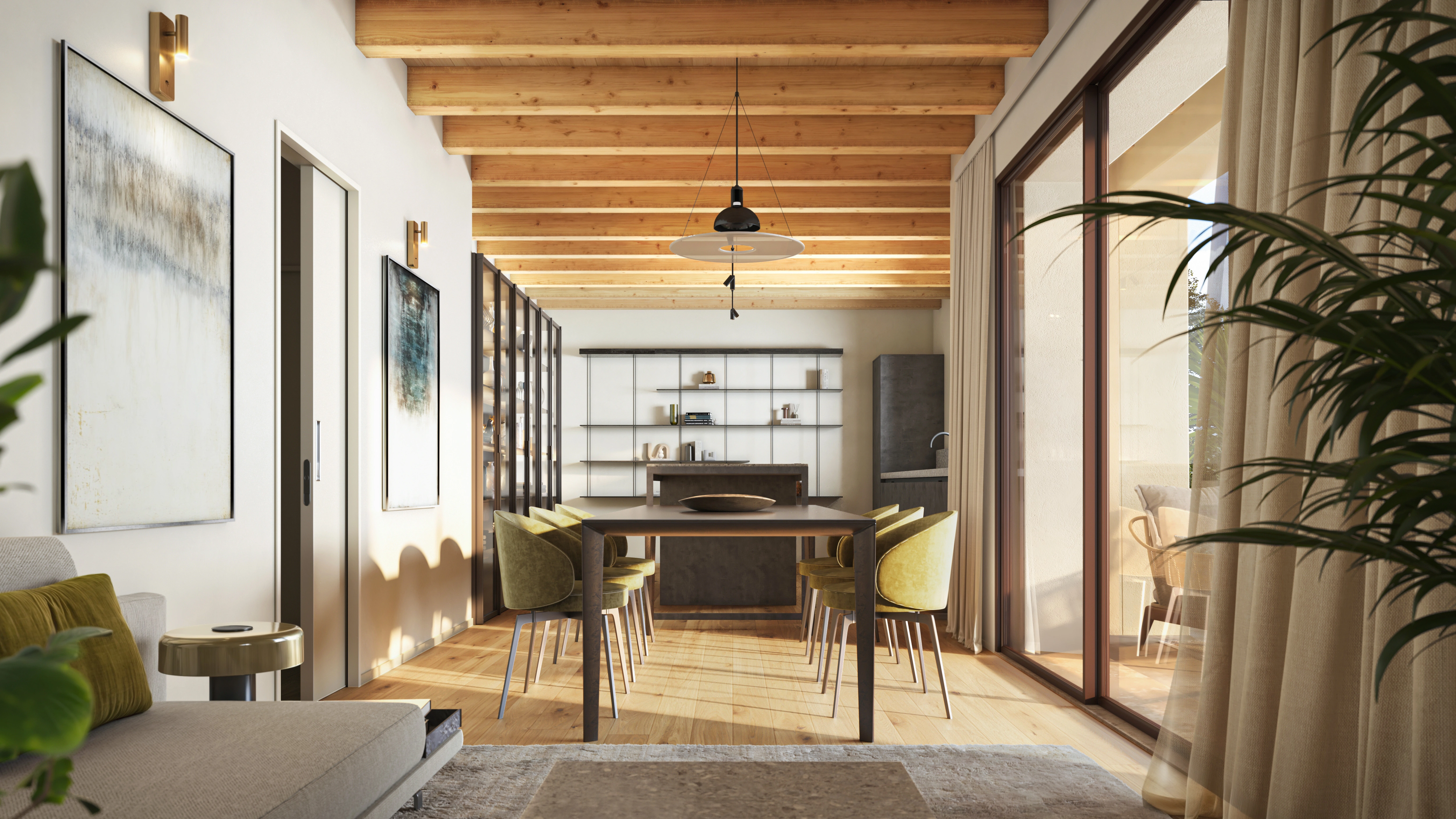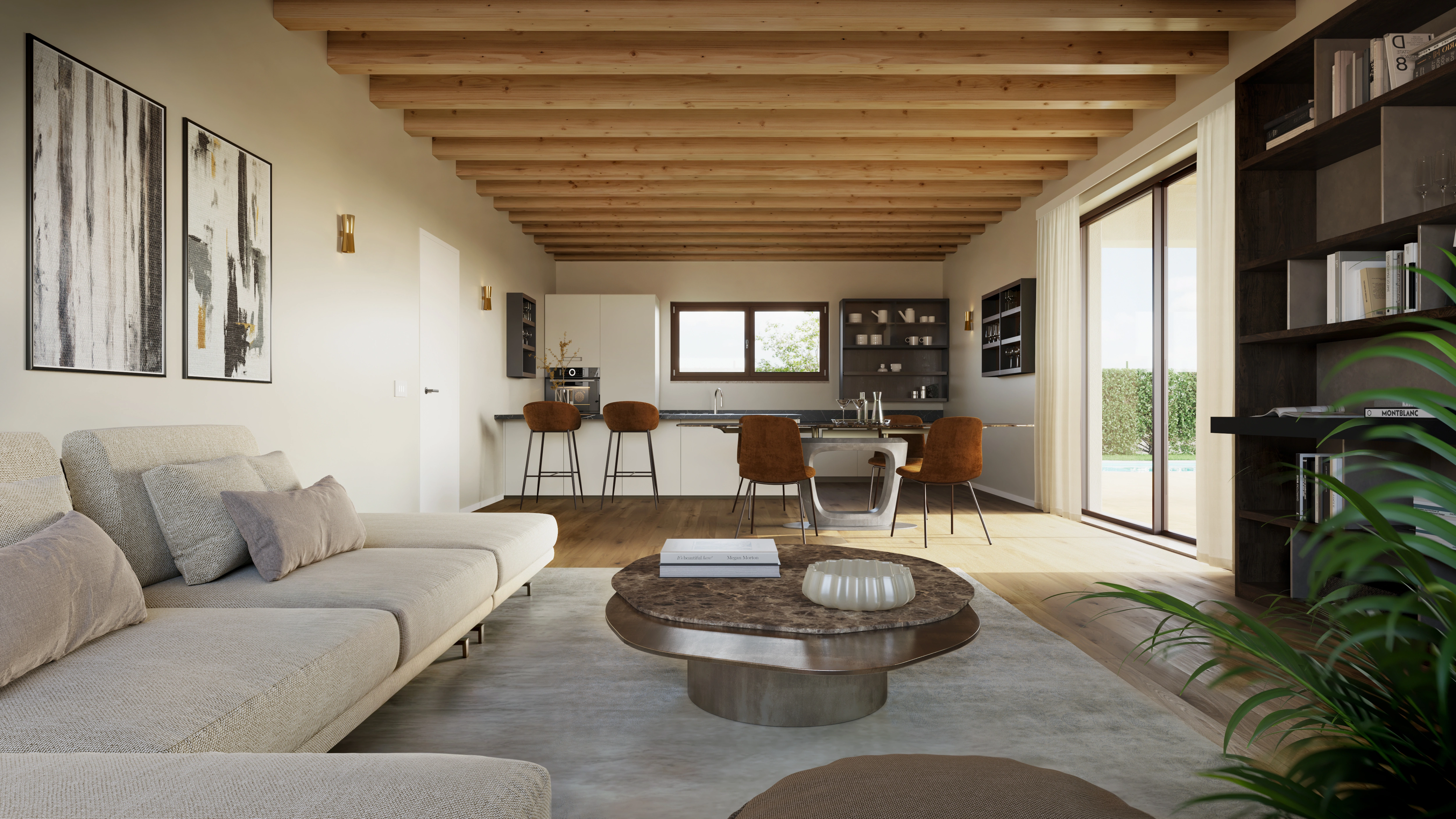 Villa Turbiana accoglie con spazi aperti e luminosi, disegnati per dialogare con il paesaggio e accompagnare il vivere quotidiano con leggerezza. Ogni ambiente è pensato per valorizzare la luce naturale e offrire continuità tra interno ed esterno, in un equilibrio semplice e armonioso.