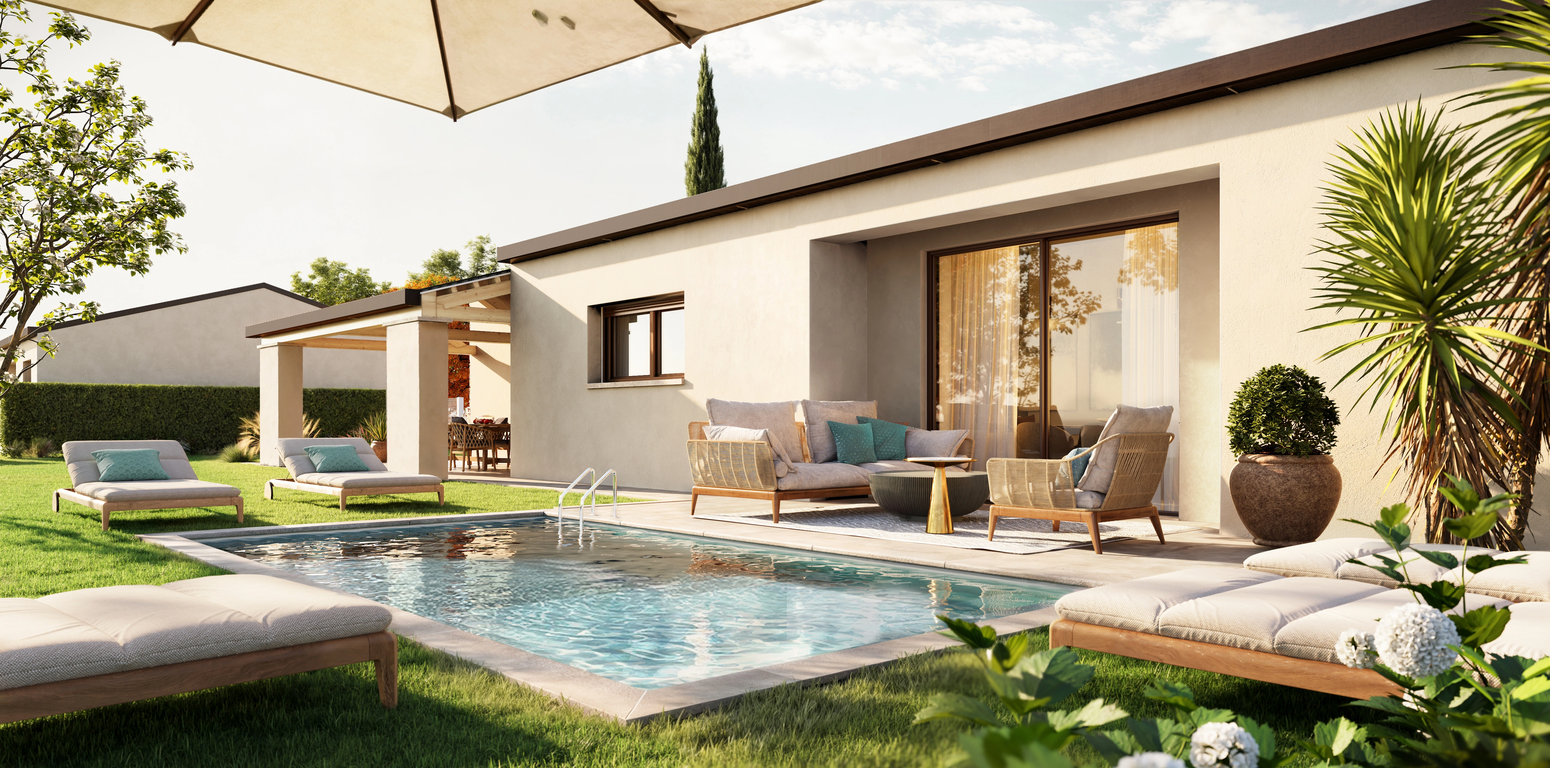 Ogni villa è pensata per offrire una dimensione abitativa completa, dove la funzionalità si intreccia con l’eleganza e ogni spazio è progettato per essere vissuto con piacere, ogni giorno.