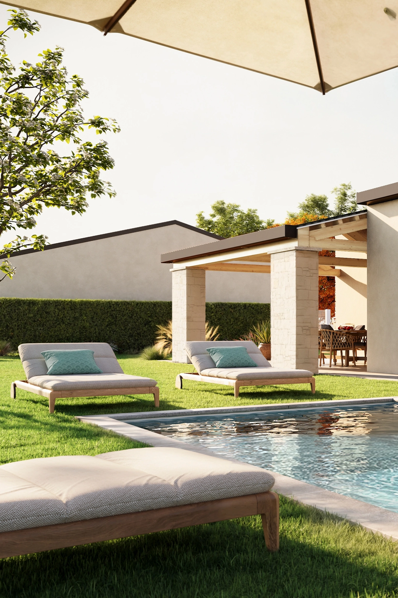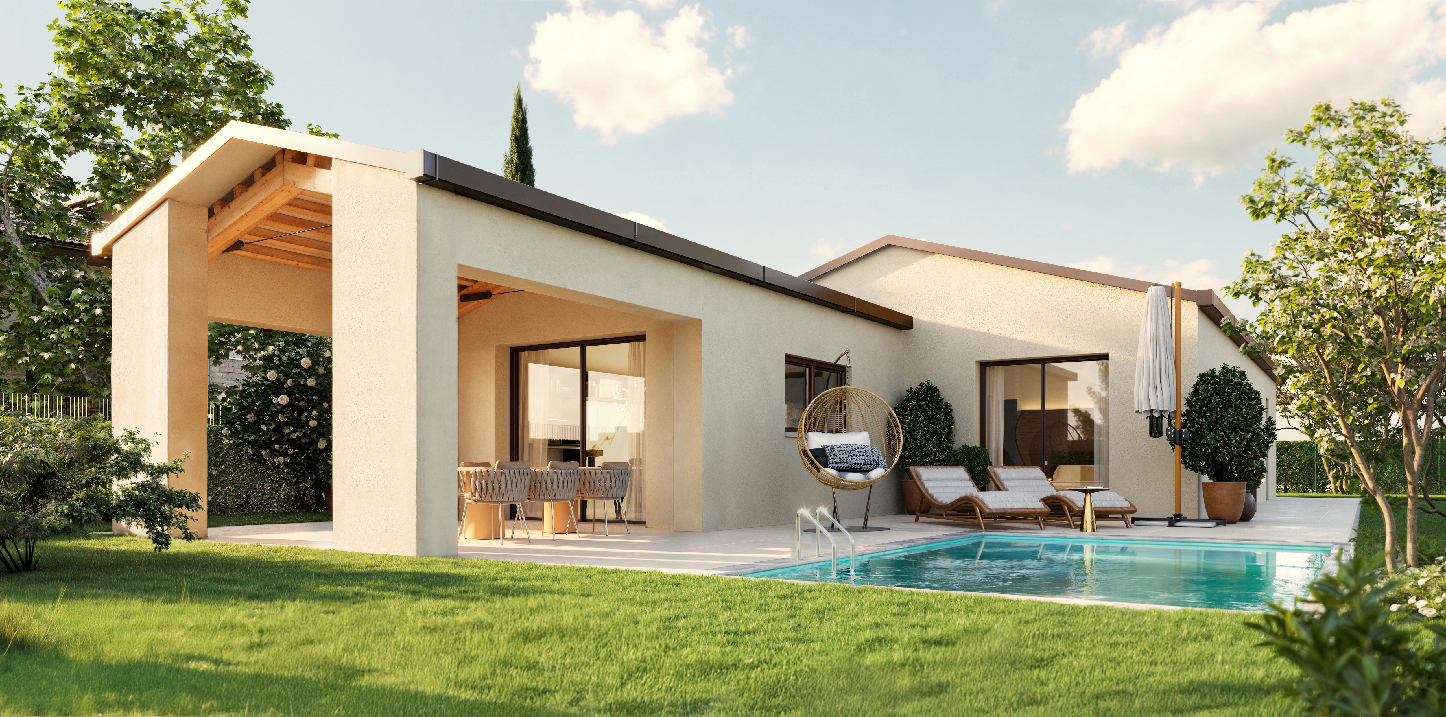Vivere in una delle ville di questo esclusivo progetto a Rivoltella significa scegliere un nuovo modo di abitare, dove la qualità degli spazi, il contatto con la natura e l’attenzione per il benessere quotidiano si incontrano. La piscina privata, il giardino da vivere tutto l’anno, i portici spaziosi e la luminosità degli ambienti interni contribuiscono a creare una dimensione di vita rilassata e autentica, perfetta per chi vuole ritagliarsi momenti di piacere e armonia ogni giorno.